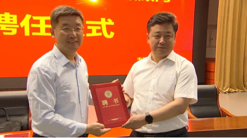 聘任仪式上,额尔古纳市委书记文进磊为黄泰岩院长颁发额尔古纳市经济发展高级顾问聘书。