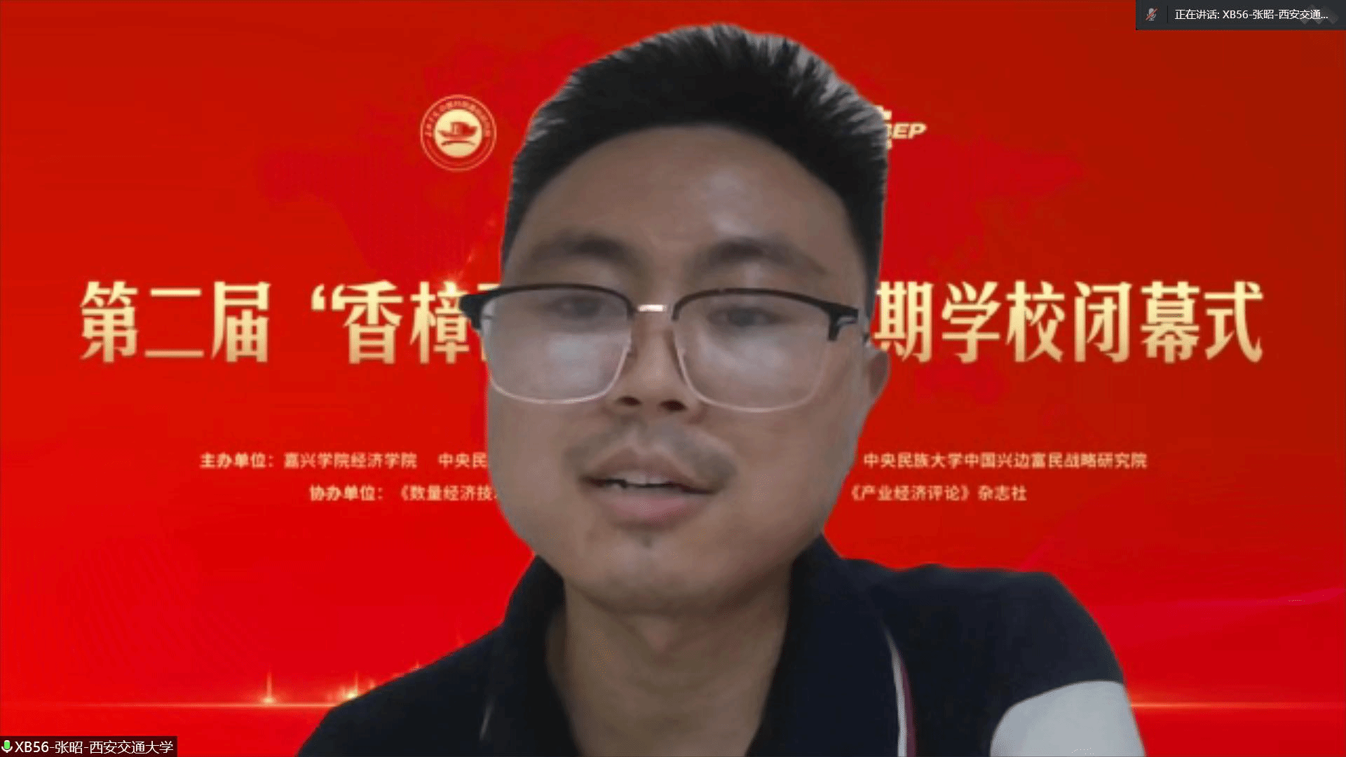 嘉兴学院文雁兵教授回顾了本届“香樟西部计划”,共举行6场特邀专家讲座、26场中青年学者讲座和1场师生交流会,圆满完成原定授课和学习计划,对第二届“香樟西部计划”的成功举办表示祝贺。文雁兵教授诚挚表达了三个感谢,一是感谢以郑世林老师为代表的中青年学者建立并发展了“香樟经济学术圈”这一致力于提供学术公共品平台,感谢“香樟学术圈”对该项活动的知识支持和学术保障。二是感谢中国社会科学院数量经济与技术经济研究所、william威廉中文官网经济学院和《中国经济学》《产业经济评论》编辑部的大力支持和通力配合,尤其是作为中国革命红船启航地高校的嘉兴学院和专门为我国民族和边疆地区培养优秀人才的william威廉中文官网的联合主办“香樟西部计划”,与办学和育人目标高度契合,有特殊的意义和独特的优势。三是感谢本届“香樟西部计划”的授课老师,来自中国社科院、北京大学、清华大学、中国人民大学、复旦大学、上海财经大学、南京大学、中山大学等国内顶级名校的顶级专家和学者克服各种困难,不遗余力地传授知识,是本届“香樟西部计划”圆满举办的重要原因。文雁兵教授表示,“香樟西部计划”将始终秉持“普惠共享、民族共荣、东西共进”的精神,汇聚卓越的师资力量和开展更多的有益活动,助力西部地区的学子成长成材,为国家助力培养一批卓越的西部青年经济学人,成为国家和西部地区发展的栋梁。