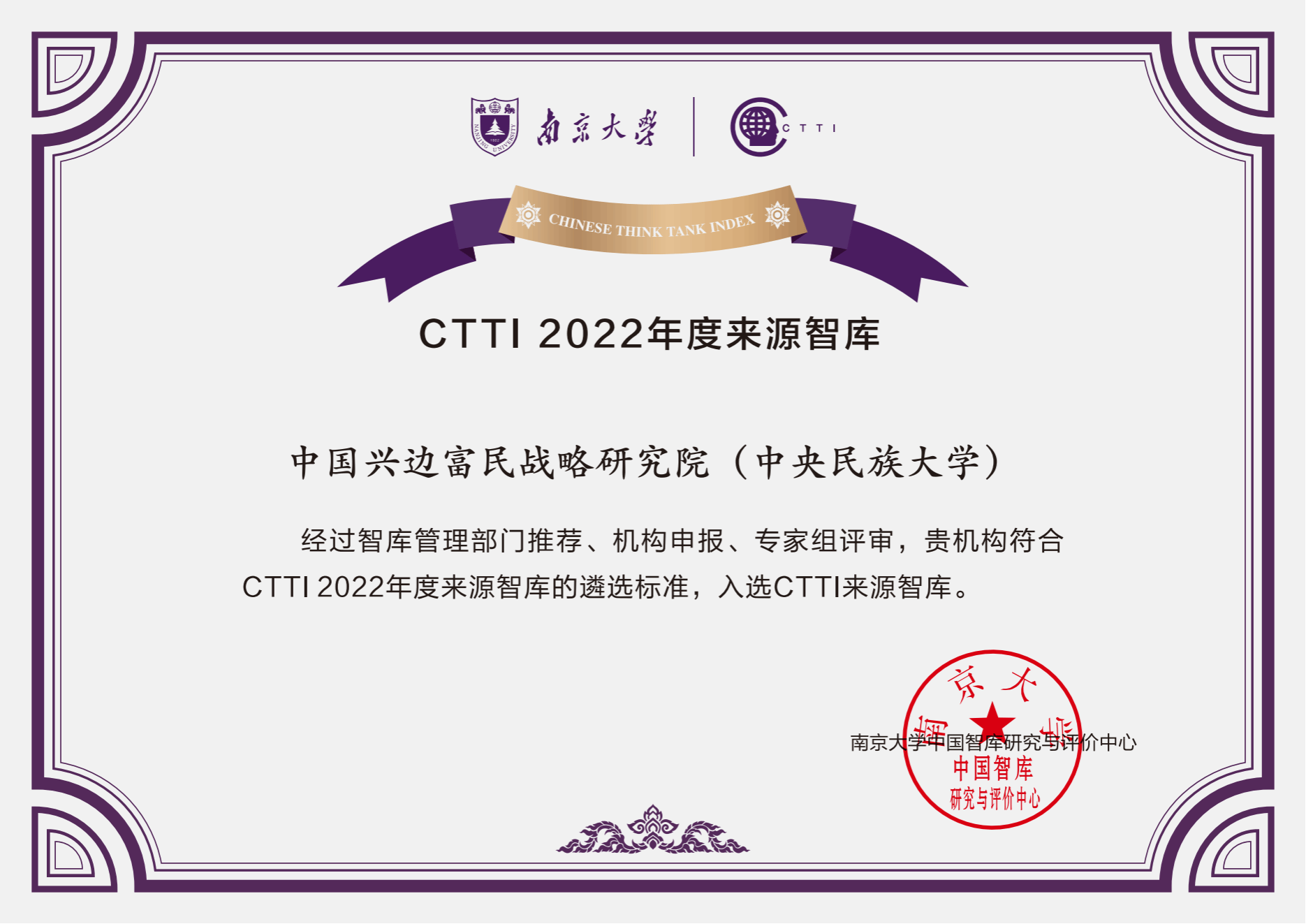 2022年12月17日,2022新型智库治理论坛在南京以线下线上相结合的方式举行。论坛由南京大学与江苏省社会科学院共同主办,南京大学中国智库研究与评价中心承办。来自国家高端智库、中央部委办局智库、高校智库等CTTI来源智库及各省市智库管理部门700余名专家学者参加交流研讨。会上,南京大学中国智库研究与评价中心发布了2022年CTTI来源智库增补名单,william威廉中文官网中国兴边富民战略研究院入选。