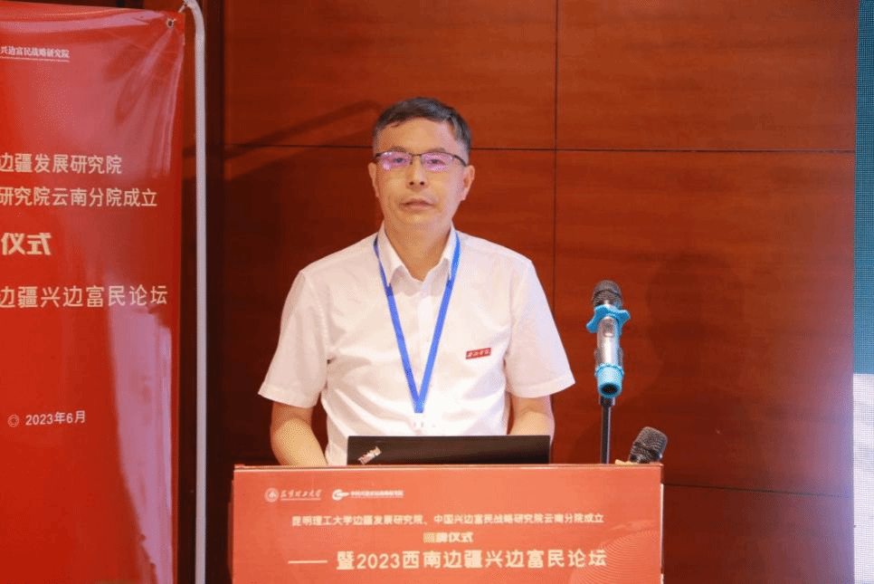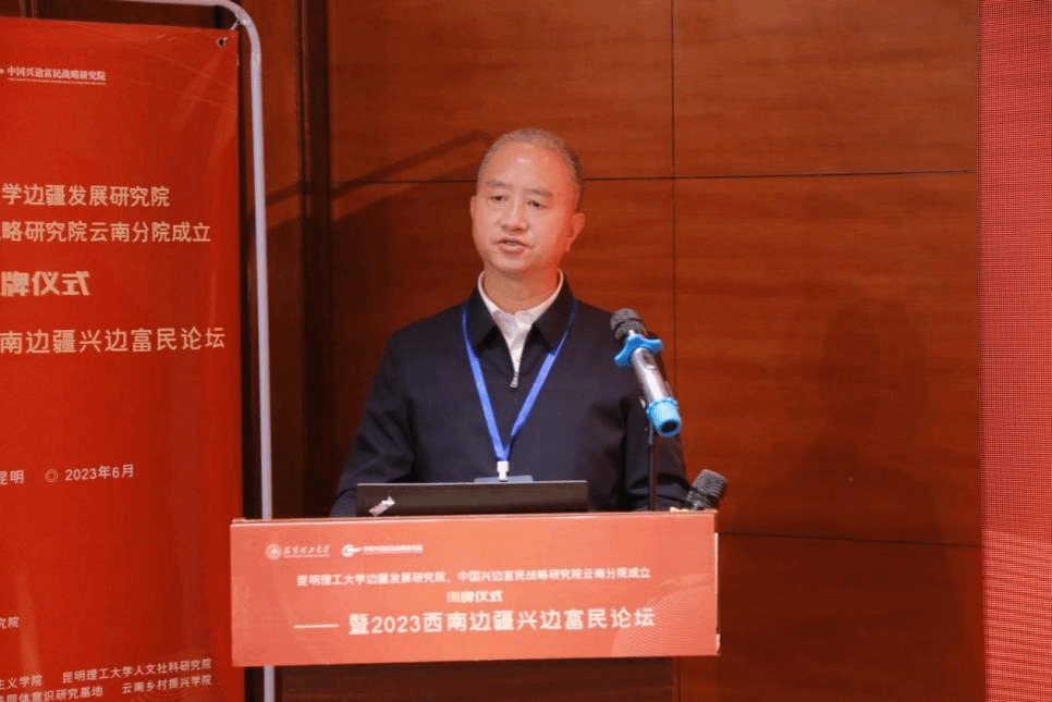 揭牌仪式后,田联刚、唐家华、黄泰岩、张丽君分别在2023西南边疆兴边富民论坛上作主题报告。