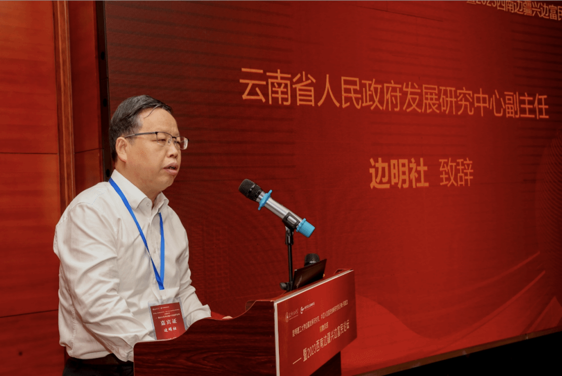边明社代表省政府发展研究中心,对昆明理工大学边疆发展研究院和中国兴边富民战略研究院云南分院的成立表示热烈祝贺。他强调了当前兴边富民工作对云南和西南边疆发展的重要性,对省政府发展研究中心与边疆发展研究院、云南分院在科学研究和决策咨询方面的合作提出了期待。