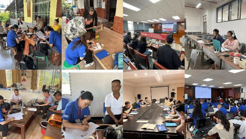 7月14日,研究院师生进行了追踪调查培训。7月18日至31日,白钰、姜伟、曹月明、李文杰等11名师生与昆明理工大学马克思主义学院39名师生,奔赴云南省8个县32个乡镇64个村开展具体的问卷调查,共获取64份村问卷和1014份农户问卷。各分队除了每天白天需要入户调查,还在深夜加班加点进行问卷整理与纠错工作,各位带队老师与同学将每天遇到的问题一一汇总、讨论,并将次日的行程二次确认以保证调研工作的高效开展。