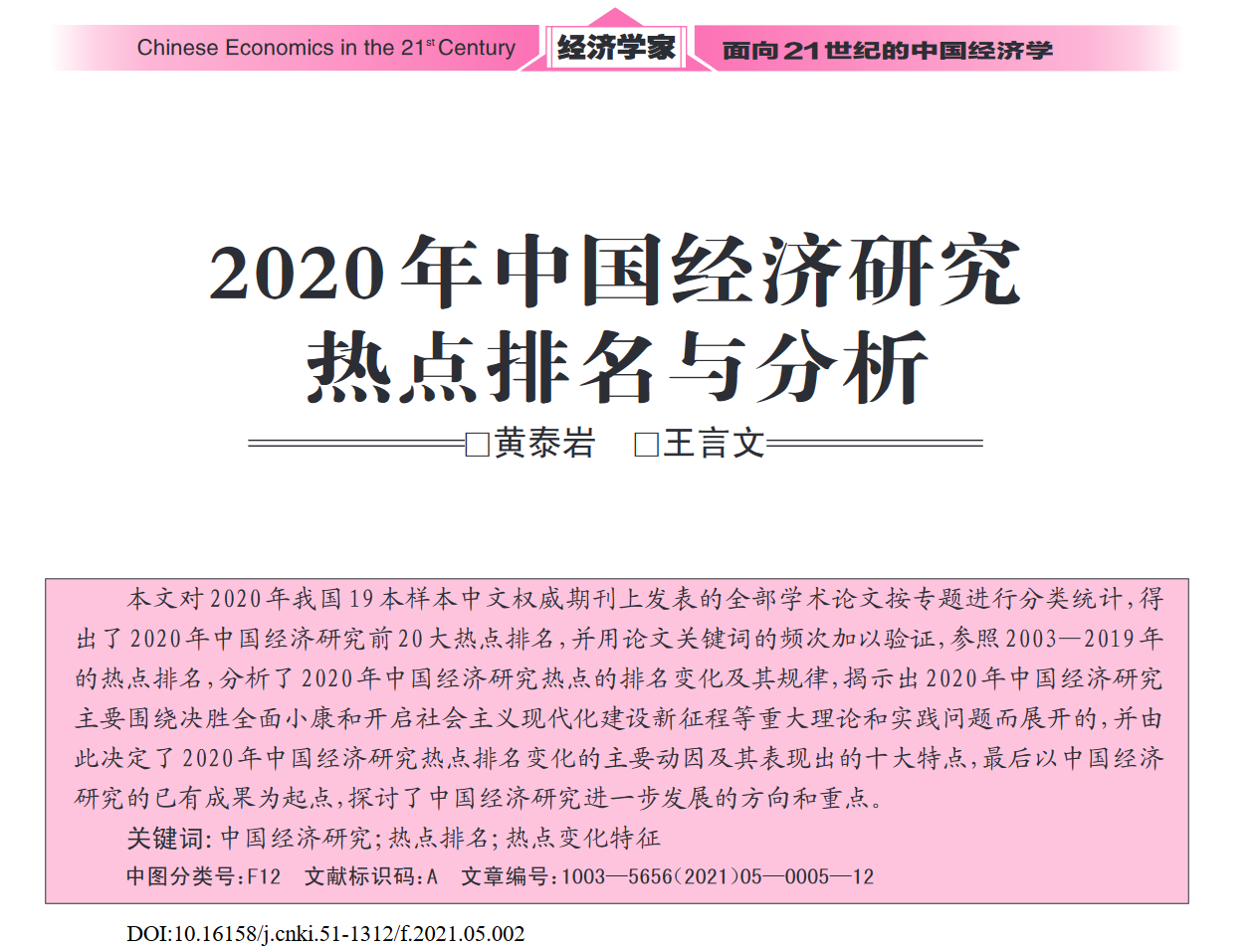 原文下载链接:https://kns.cnki.net/kcms/detail/detail.aspx?dbcode=CJFD&dbname=CJFDLAST2021&filename=JJXJ202105002&uniplatform=NZKPT&v=vBbNm42B1e_IFTTKY3FHNW8GwSZo1LM4heAizTQIx7kVU4kXVBFEfwazS0eKWm1O